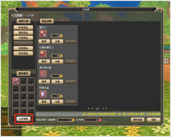 1. 點選主介面上的「元氣舖」按鈕